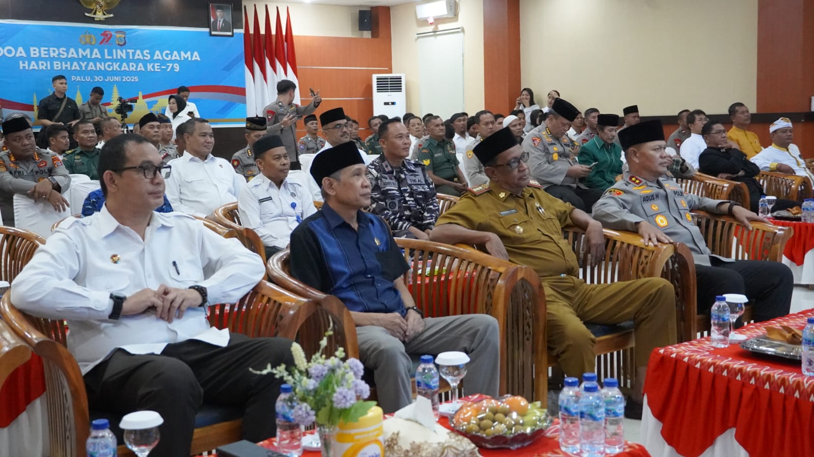 Kegiatan doa lintas agama tersebut di hadiri oleh unsur Forkopimda, tokoh agama, dan berbagai elemen masyarakat. Hadir pula Kapolda Sulteng Irjen Pol. Agus Nugroho, serta para pejabat tinggi daerah lainnya, termasuk Danrem 132/Tadulako, Kajati Sulteng, Danlanal Palu, Kepala Pengadilan Tinggi Sulteng, Rektor UIN Datokarama, dan Ketua Forum Kerukunan Umat Beragama (FKUB) Sulteng. Acara ini juga di ikuti secara virtual oleh jajaran Kepolisian Republik Indonesia di seluruh wilayah.