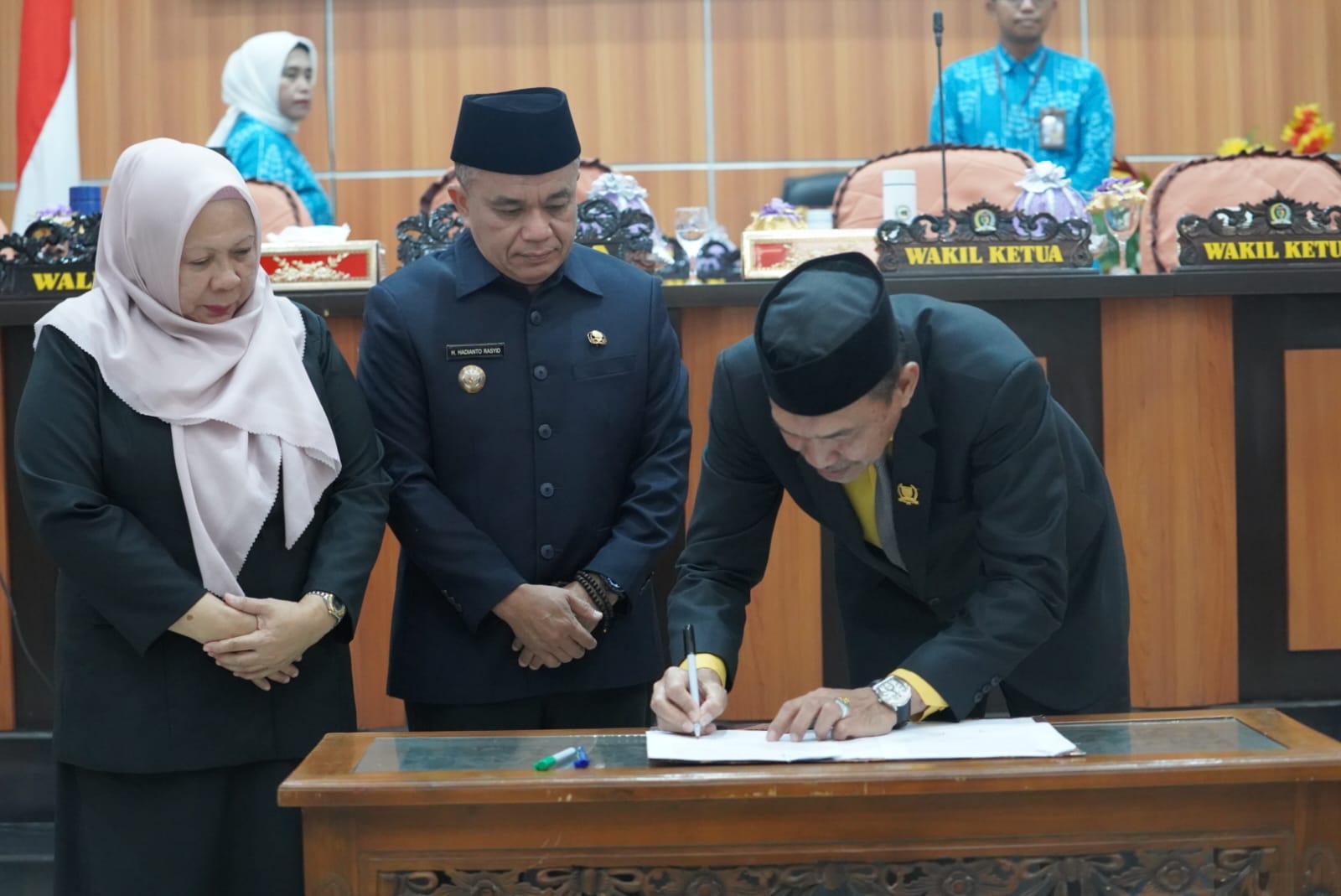 dailykota.com Palu, H. Hadianto Rasyid dan Wakil , Lamadjido, menghadiri Rapat Paripurna bersama DPRD Kota Palu di ruang sidang utama Kantor DPRD, Sabtu malam, 8 Februari 2025.